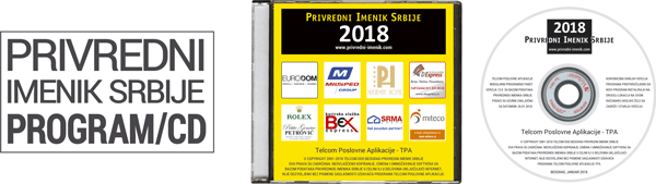 03.02.2018.Novi Program/CD Privrednog Imenika Srbije za 2018. godinu je upravo izašao. U toku je distribucija pretplatnicima preko Pošte Srbije, a Program se može beplatno preuzeti i testirati sa sajta Privrednog Imenika Srbije. Program Privrednog Imenika Srbije je od prošle godine dostupan i u verziji na Engleskom jeziku, a softver se distribuira pod naslovom B2B Serbia – Telcom Business Application.